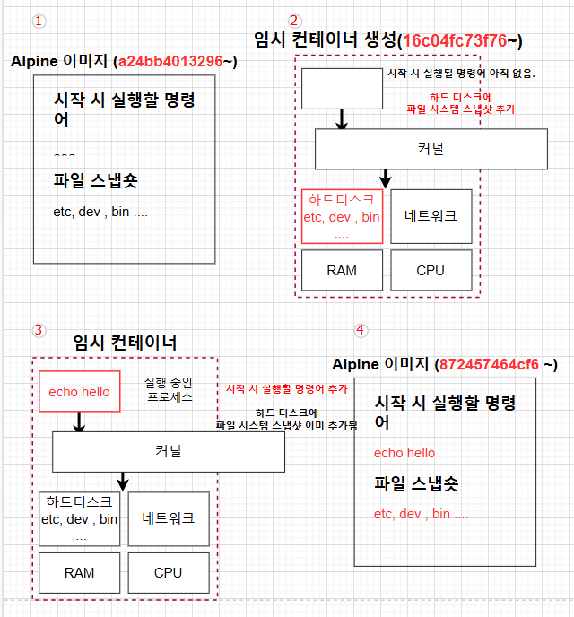 결과적으로 이 빌드과정은 alpine기반 이미지 위에 CMD["echo","hello"]명령을 추가하여 최종 Docker이미지를 생성하는 과정을 나타낸다.