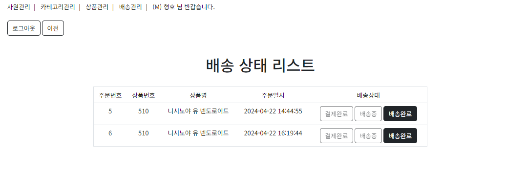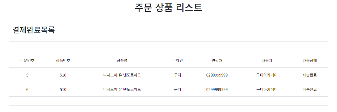 // 주문 완료된 상품의 배송현황 리스트 가져오기
