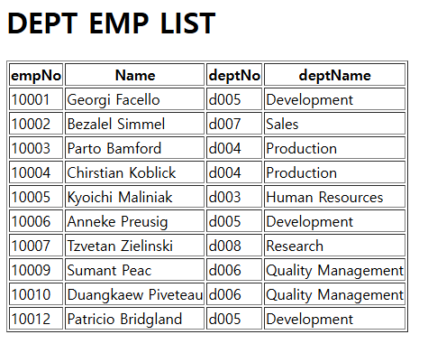 deptEmpList.jsp 출력결과