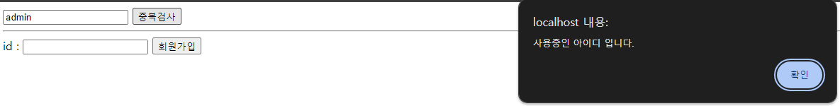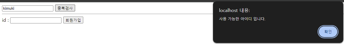 // ajax + json 을 활용한 ID 중복검사
