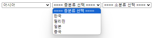 JQuery 사용하여 대분류 - 중분류 - 소분류 검색