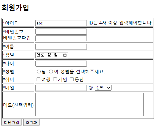 JQuery 사용하여 회원가입 폼 작성 + 유효성 검사