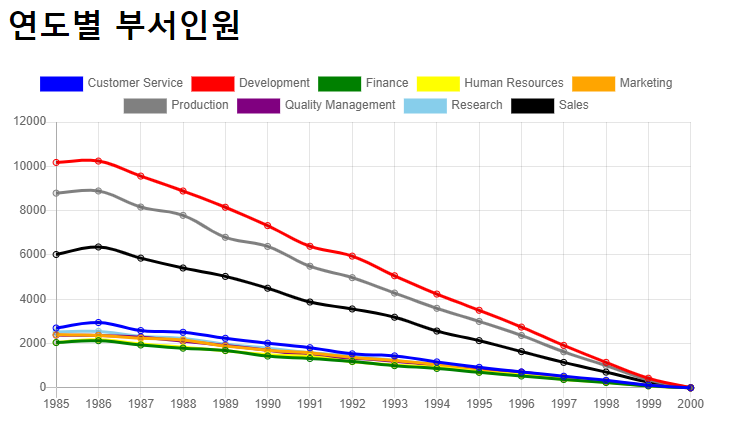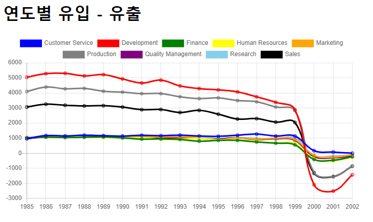 # 성별에 따른 입사년도 cnt로 차트 만들기 ★★
