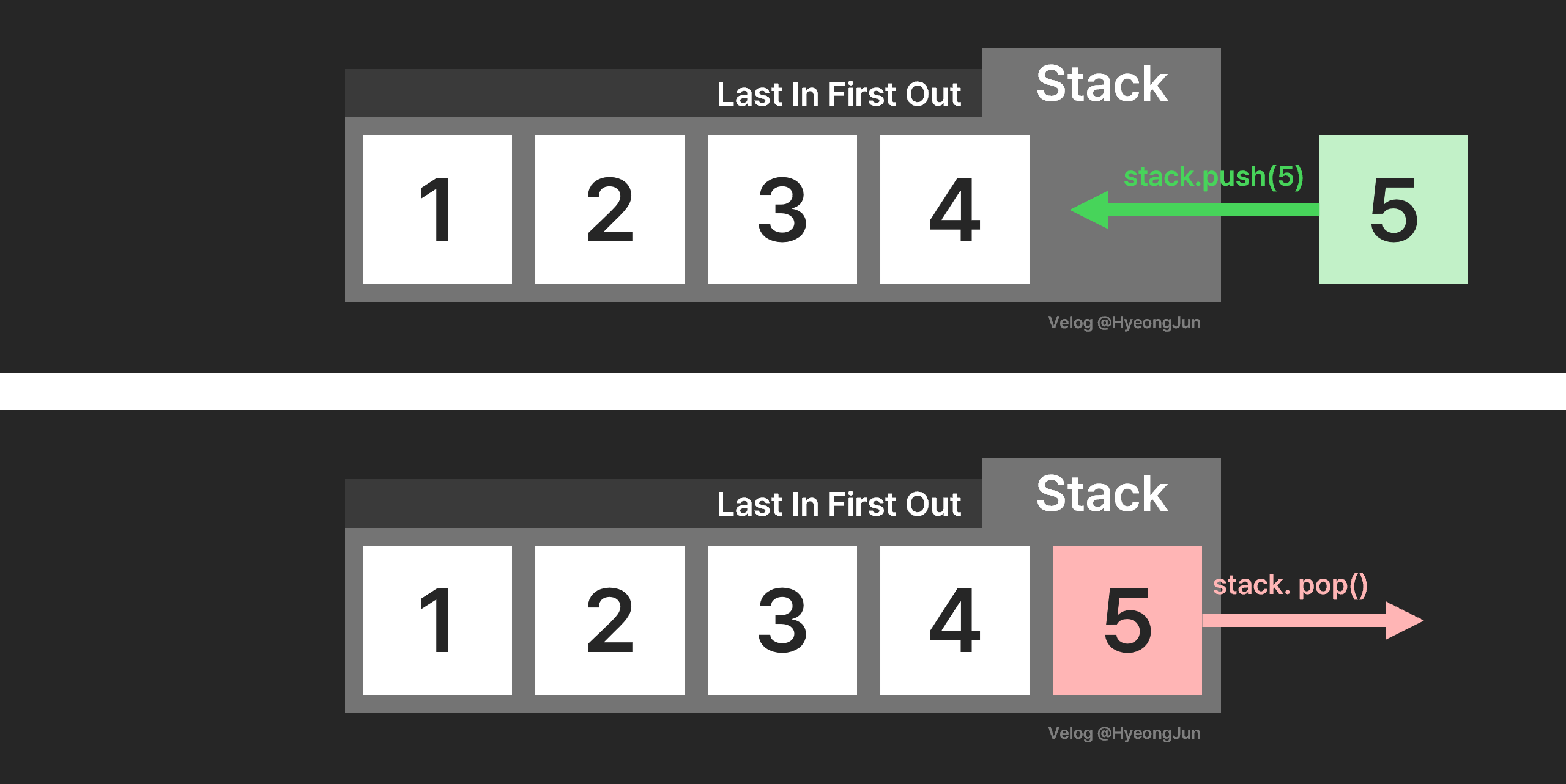 stack.push(5); // [1, 2, 3, 4, 5]