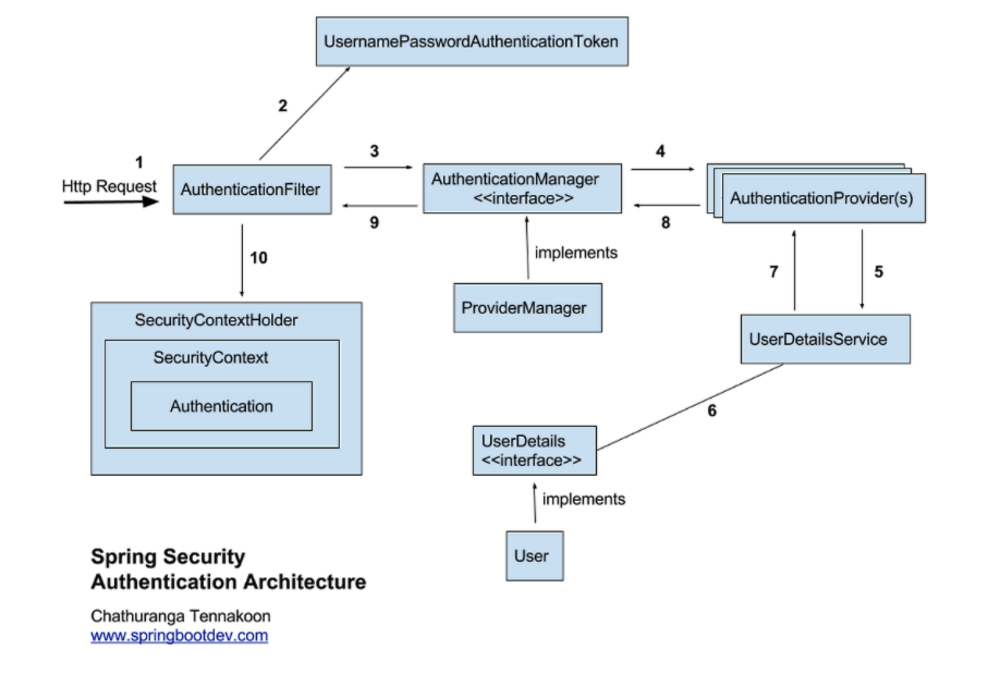 spring security는 다양한 컴포넌트들로 구성되어있습니다. 이 중 몇개만 어떤 역할을 하는지 한번 알아볼까요?