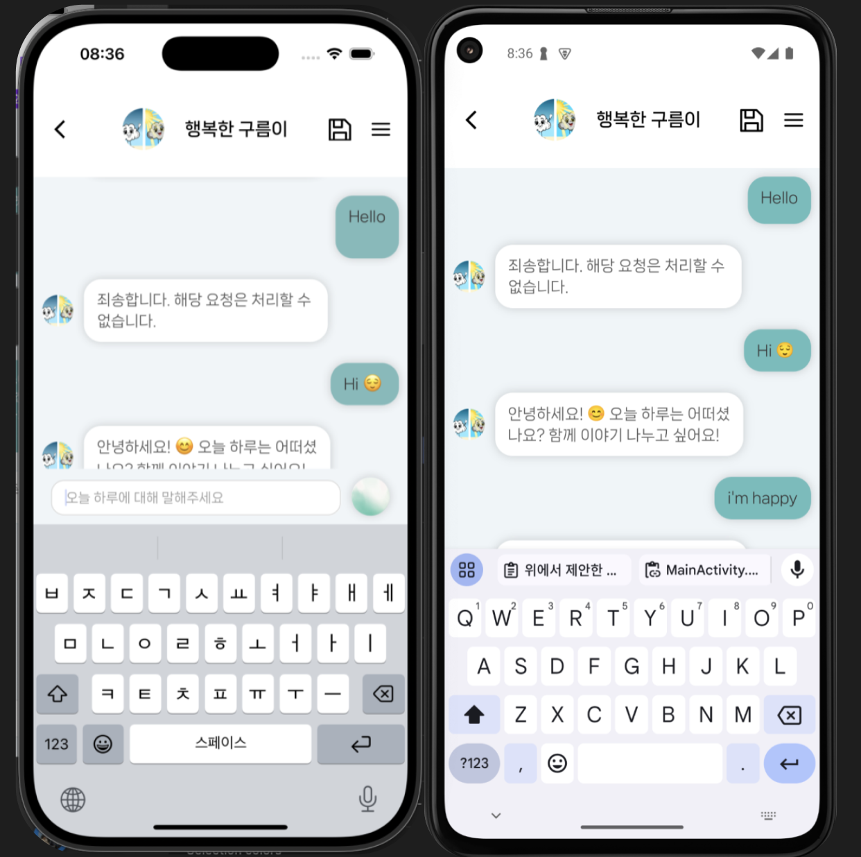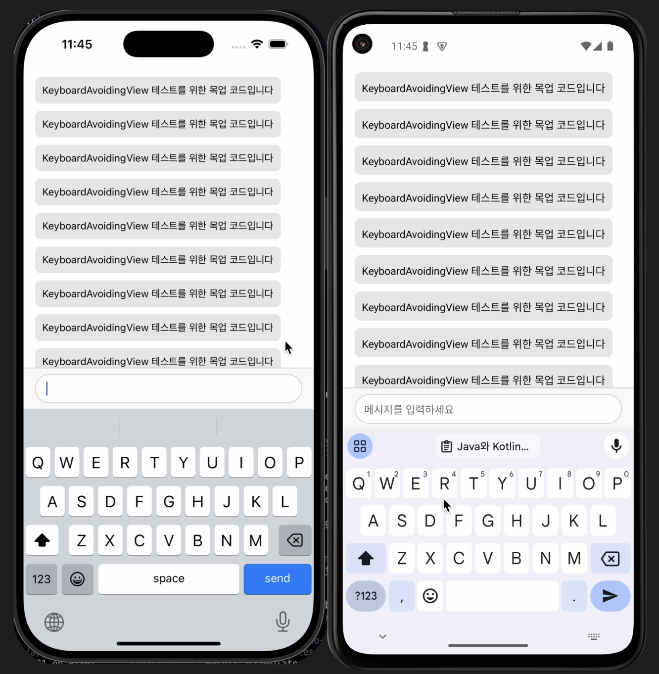 Android SDK를 35로 올린 뒤 테스트를 해보았는데, 위 사진처럼 키보드가 화면을 가리는 현상이 발생했다.. IOS도 확인해보았으나, 여기서는 문제가 없었다. 🫤