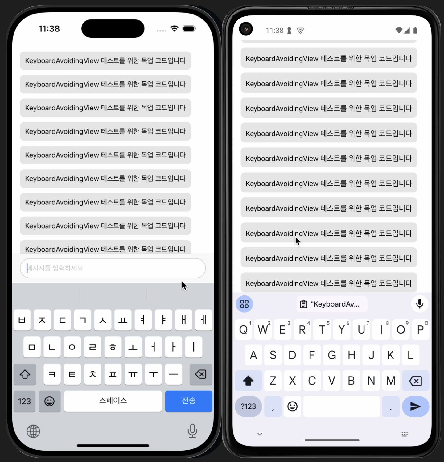 IOS에서는 문제가 없지만, Android에서는 키보드가 화면을 가리는 것을 확인할 수 있다.
