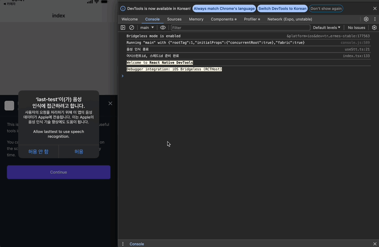 리액트 네이티브 정보는 리액트에 비해 많이 부족하다. expo-speech-recognition도 국내에서 사용해본 후기는 하나도 없었다. 매우 좋은 라이브러리라 STT 기능이 필요하면 적극적으로 사용하면 좋을 것 같다.
