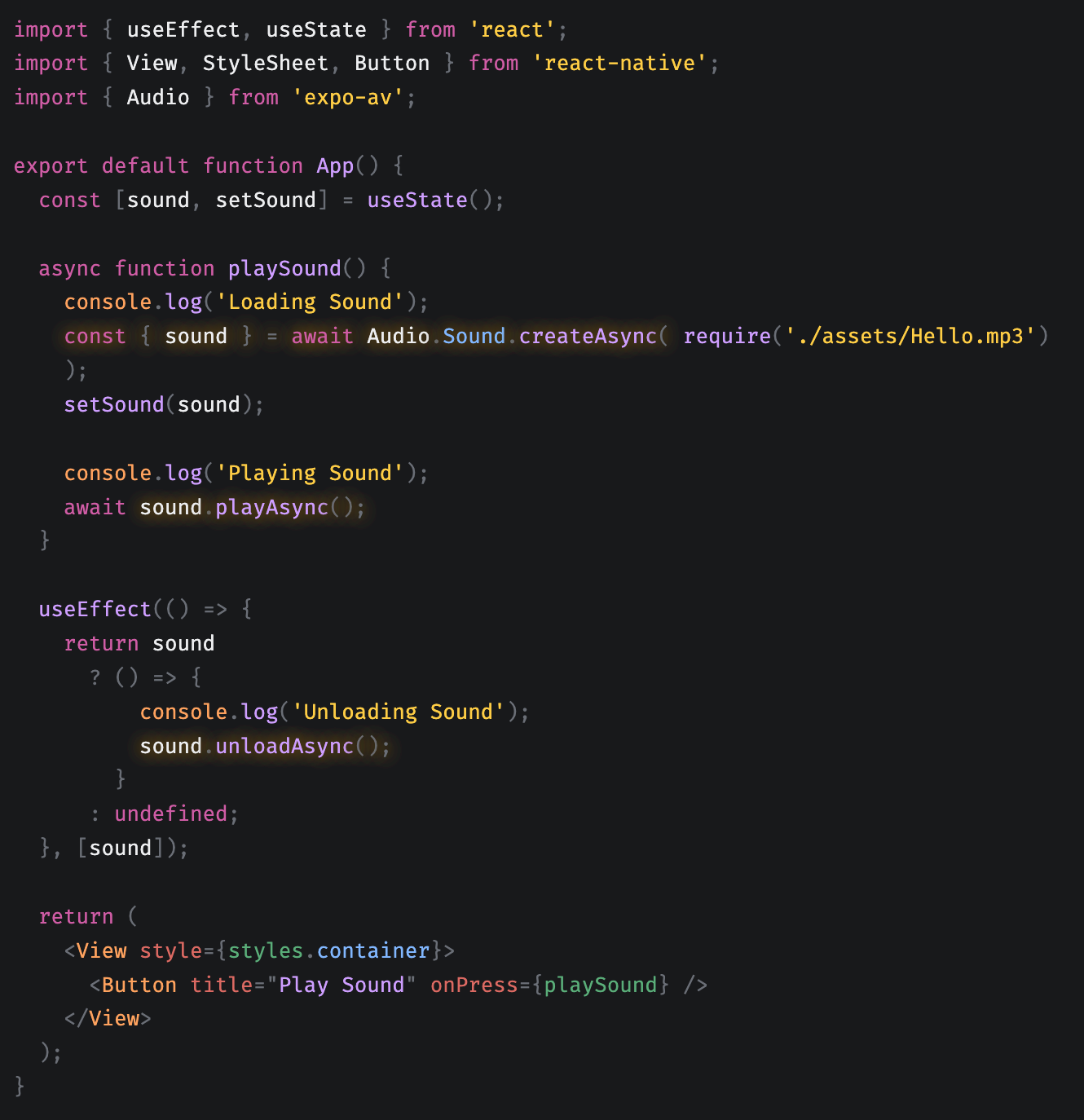 const { sound } = await Audio.Sound.createAsync({ uri }, { shouldPlay: true });