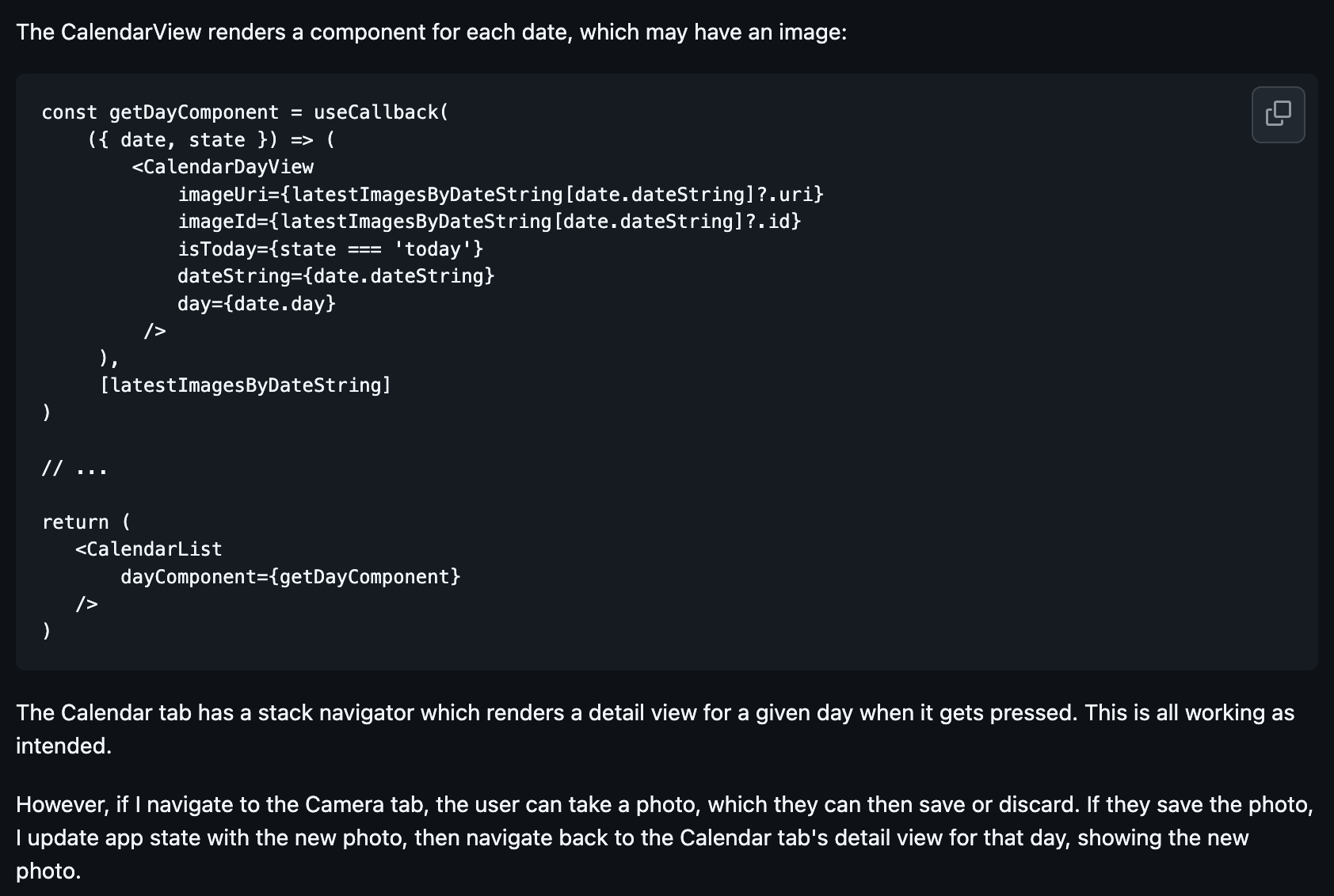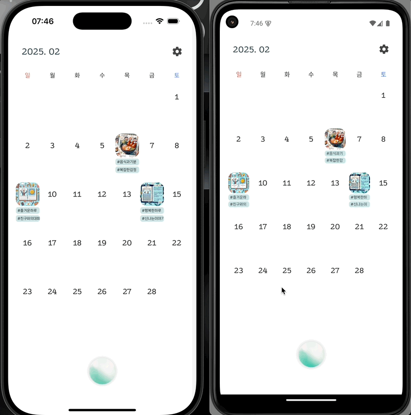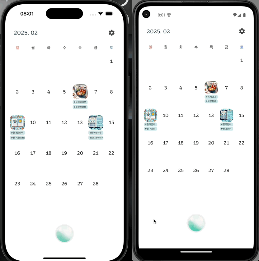 하지만 꽤 거슬리는 문제가 발생했다. 캘린더를 스와이프할 때 미리 일기 데이터가 렌더링 되어있도록 구현해 사용자 경험을 향상시키자는 내용을 회의 때 주고받았는데, 스와이프 시 이미지가 깜빡거리는 문제가 발생했다.