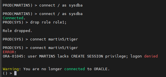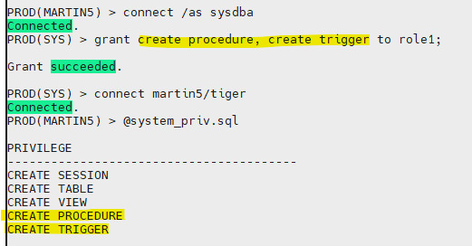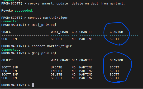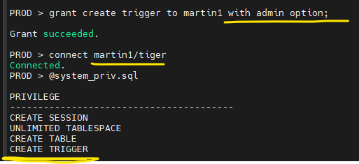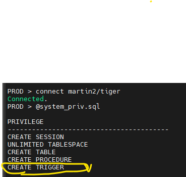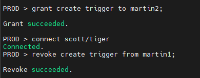 scott 계정에서 martin1 계정에 부여했던 create trigger 권한을 취소하면