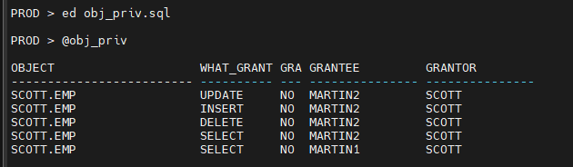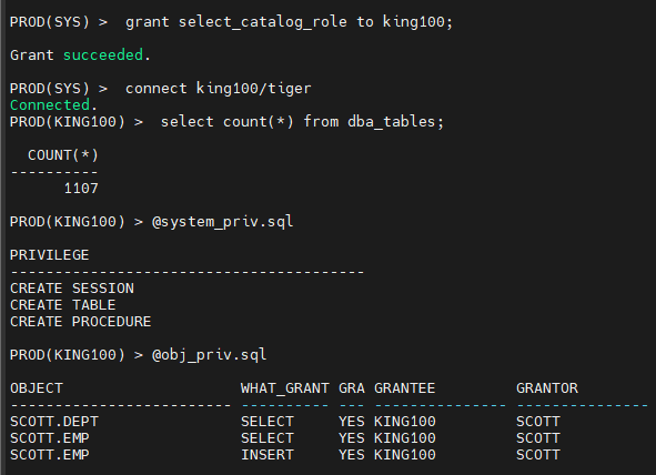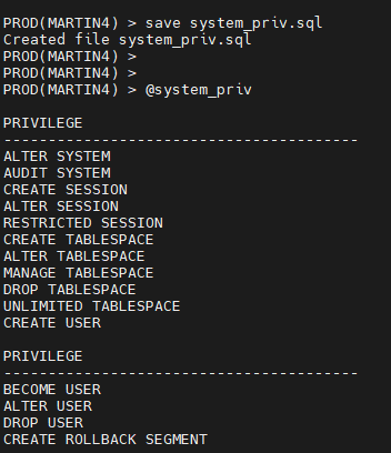 문제3. dba 에게 유용한 권한 관련 스크립트 2개를 저장하시오 !