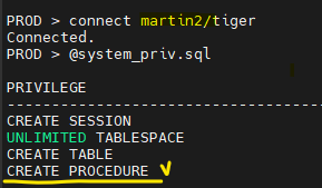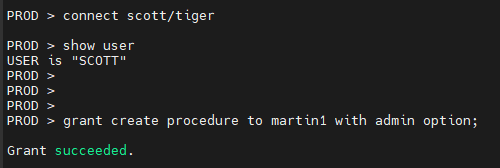 #1. scott 계정에서 martin1 에게 create procedure 권한을 줍니다.