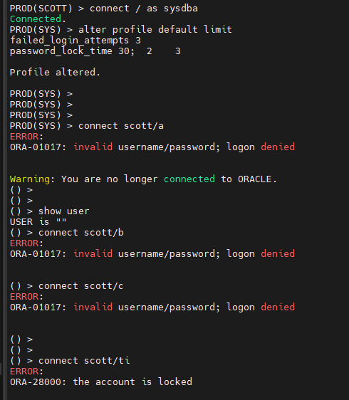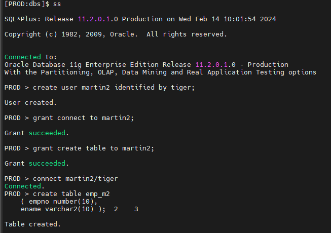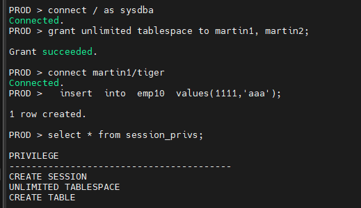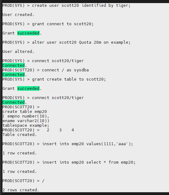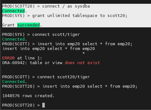 PROD(SYS) > grant unlimited tablespace to scott20;