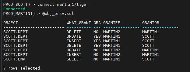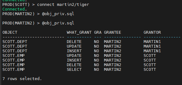 martin2 계정에 emp 테이블을 select 할 수 있는지 확인하시오 !