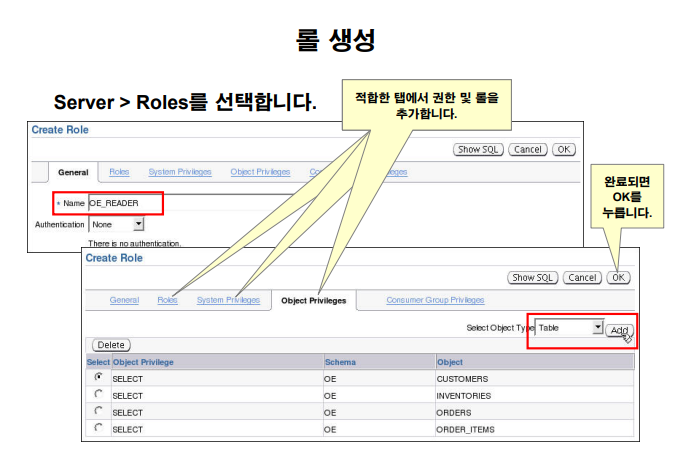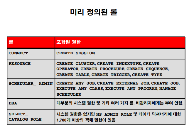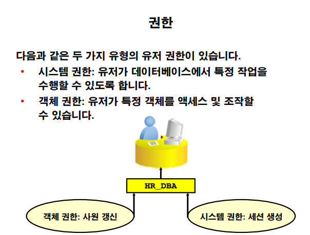 어제 한 것 시스템권한 객체 권한 두가지가 있다 를 함.