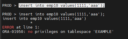 ORA-01950: no privileges on tablespace 'EXAMPLE'