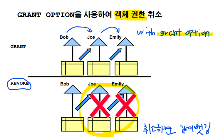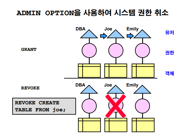 권한을 줄 때 with admin option 을 써서 줍니다.
