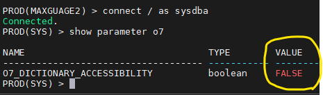 o7_dictionary_accessibility 파라미터를 확인해야 함