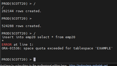 PROD(SCOTT20) > insert into emp20 select * from emp20;