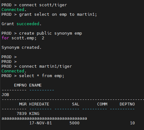 grant select on emp to public ---> emp 테이블에 select 할 수 있는 권한을 모두에게 준거임