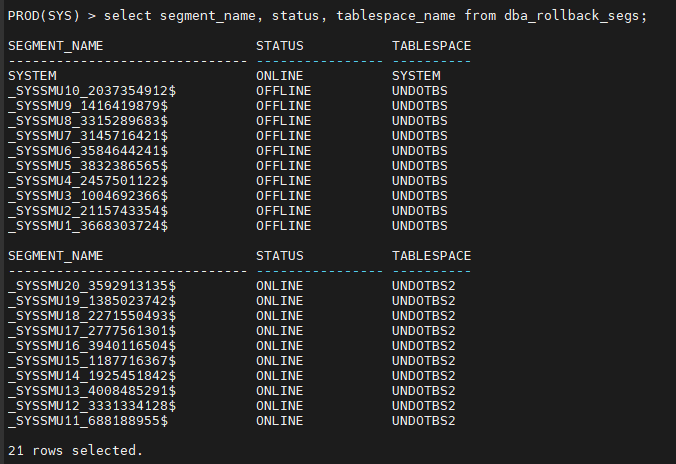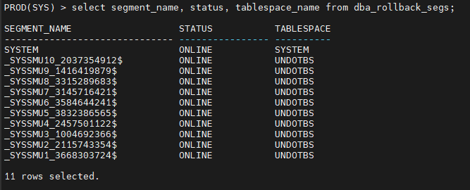 select segment_name, status, tablespace_name from dba_rollback_segs;