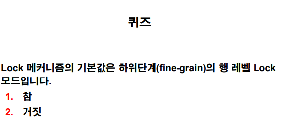 lock 메커니즘의 기본값은 하위단계의 행 레벨 lock 모드 이다