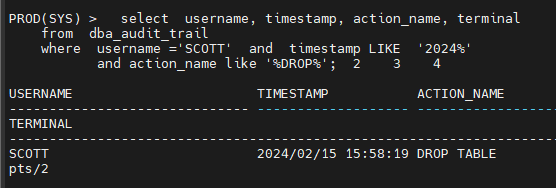 where username ='SCOTT' and timestamp LIKE '2024%'