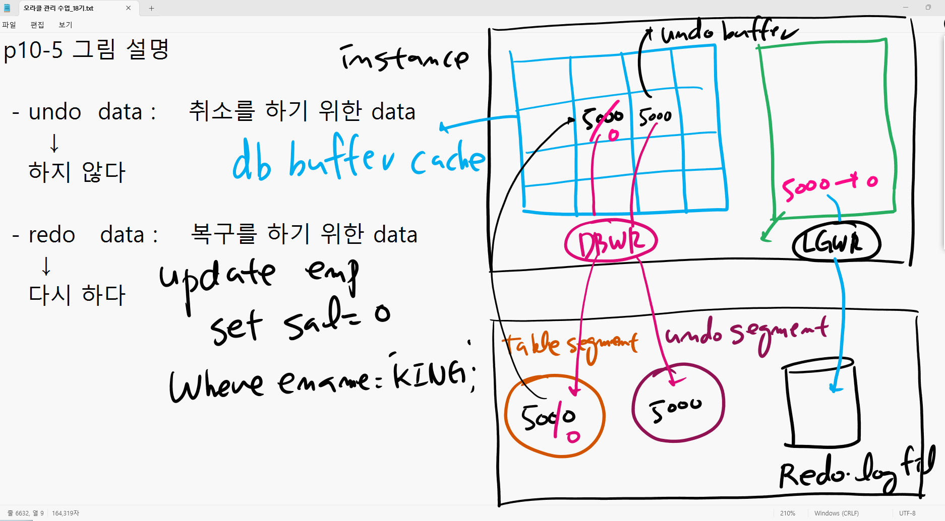 그리고 이 상태에서 dbwr 메모리의 dirty buffer 를 table segment 에 내려썼고