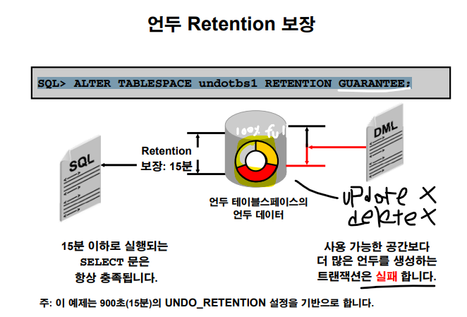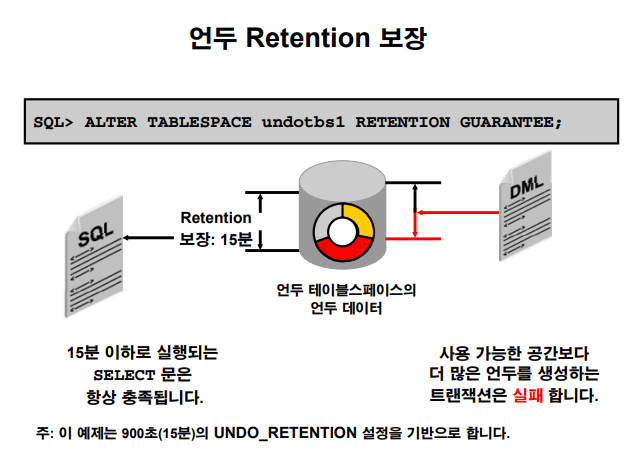 undo tablespace 의 retention 을 guarantee 해줘야 합니다.