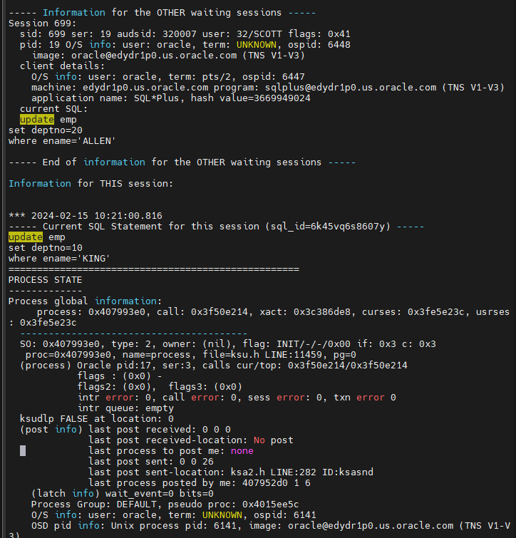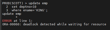 ORA-00060: Deadlock detected. More info in file /u01/app/oracle/diag/rdbms/prod/PROD/trace/PROD_ora_6141.trc.
