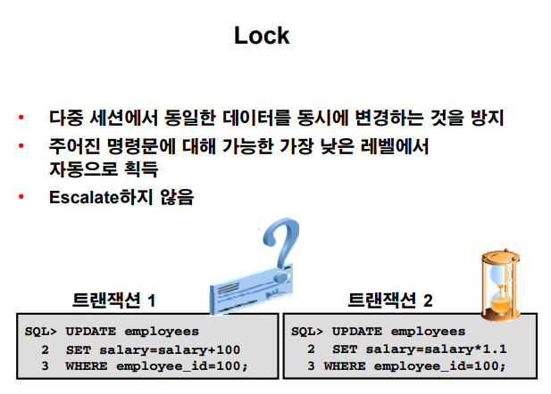 where ename = 'KING'; --- 행에 lock 을 건다 (tm)