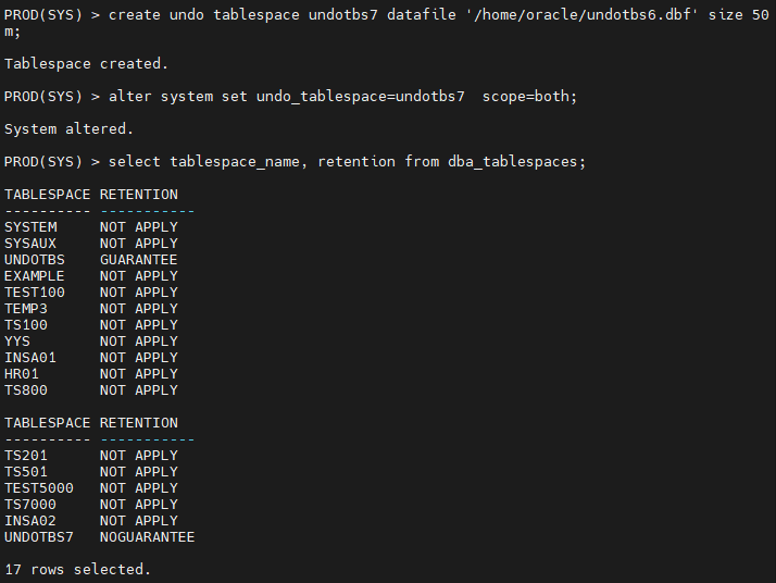 #2. 10m 언두 테이블 스페이스를 현재 사용중인 undo tablespace 로 변경합니다.