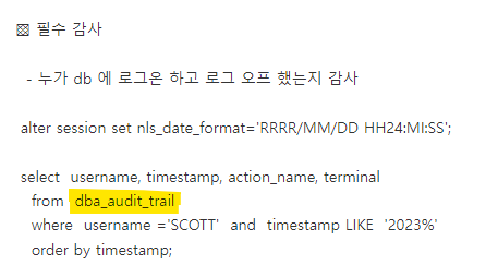 3. audit create any trigger; -> 트리거를 생성하면 감사합니다.