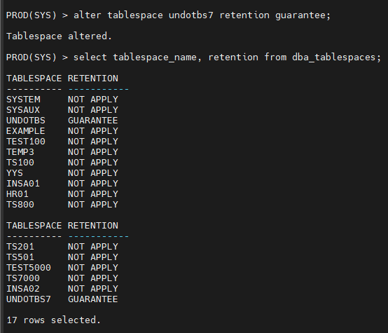 alter tablespace undotbs9 retention guarantee;