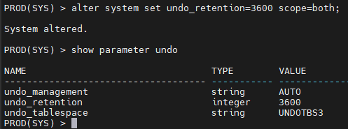 alter system set undo_retention=1800 scope=both;