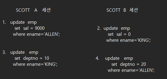 where ename = 'ALLEN'; ----- 락에 걸리지 않음