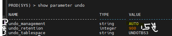 show parameter undo 했을 때 나오는 화면을 캡쳐해서 올리세요 ~~