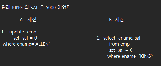 상황 : A 세션 에서는 KING 의 월급을 0으로 변경하고