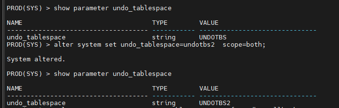 alter system set undo_tablespace=undotbs9 scope=both;