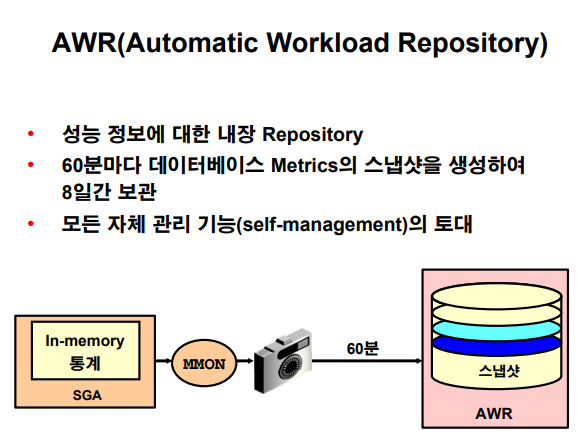 mmon 이라는 오라클 백그라운드 프로세서가 1시간에 1번씩 메모리의 성능 정보를 수집해서