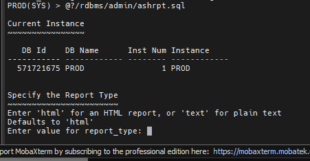 PROD(SYS)> @?/rdbms/admin/awrrpt.sql