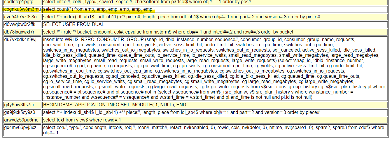 where sql_text like 'select ename, sal%';