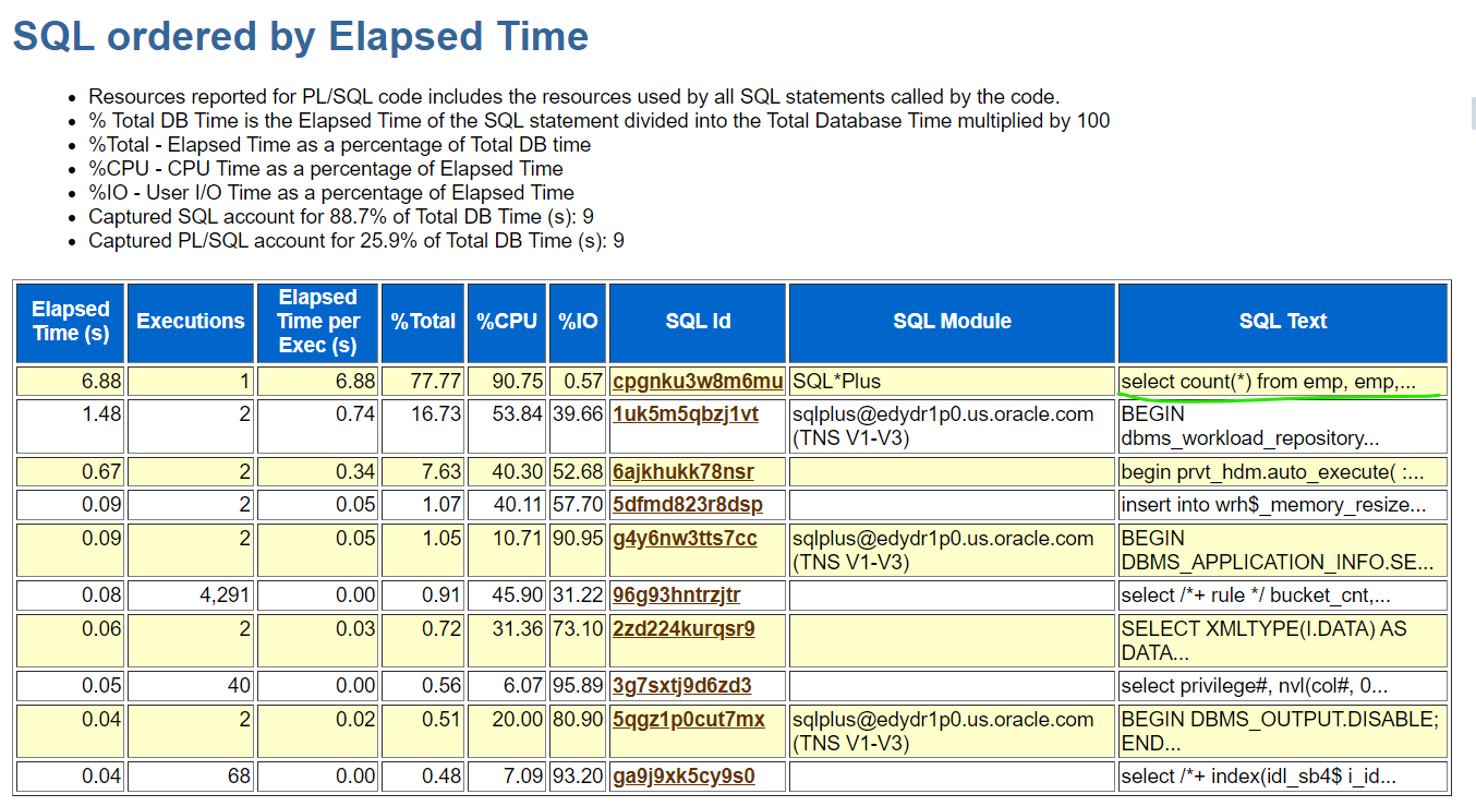아래의 report 를 dba 가 활용해야 하는 때 ?
