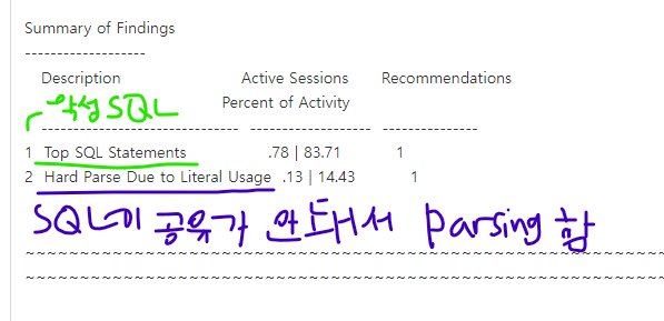 설명: 리터럴 SQL을 오라클이 알아서 바인드 변수로 변경했습니다.