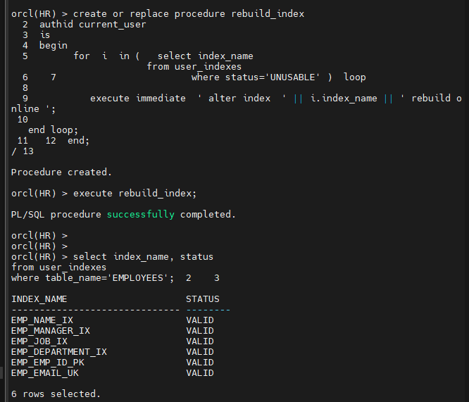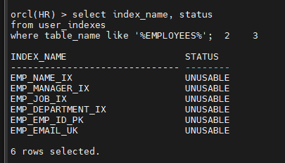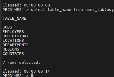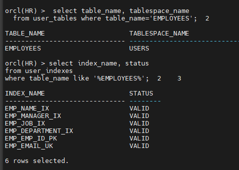 orcl(HR) > select table_name from user_tables;