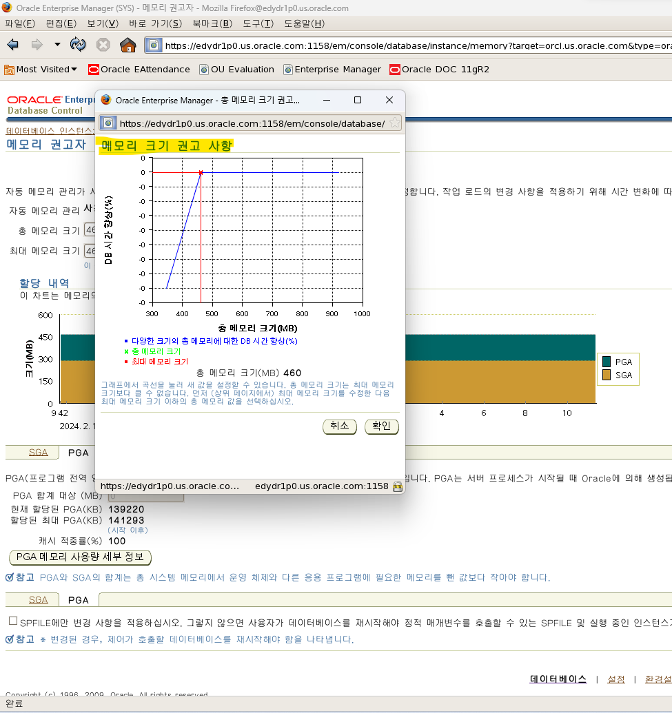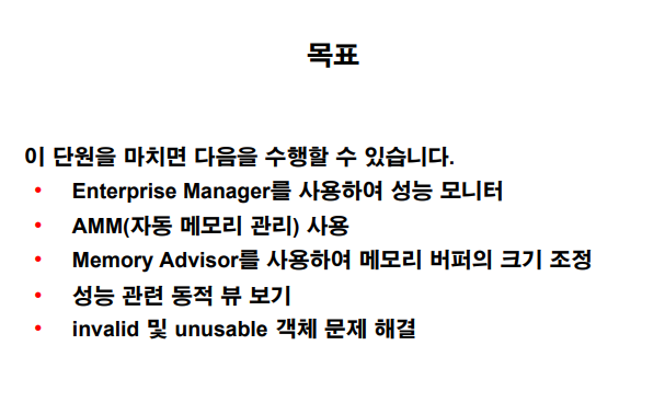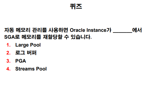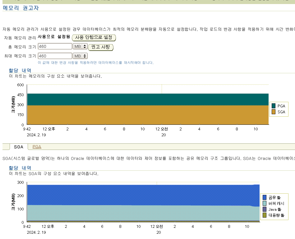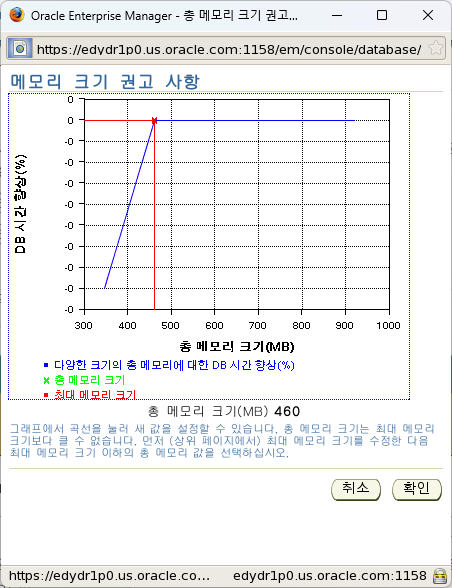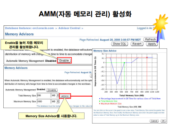 데이터베이스를 구성할 때 AMM(자동 메모리 관리) 기능을 활성화하지 않은 경우 다음
