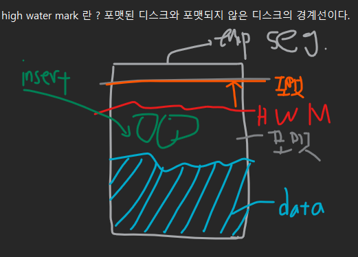commit 을 해야 HWM 가 위로 올라가면서 데이터를 select 할 수 있습니다.