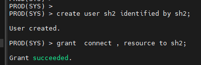 create user sh2 identified by sh2