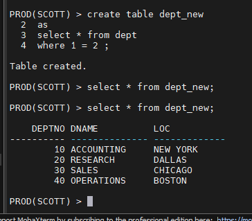 PROD(SCOTT) > create table dept_new